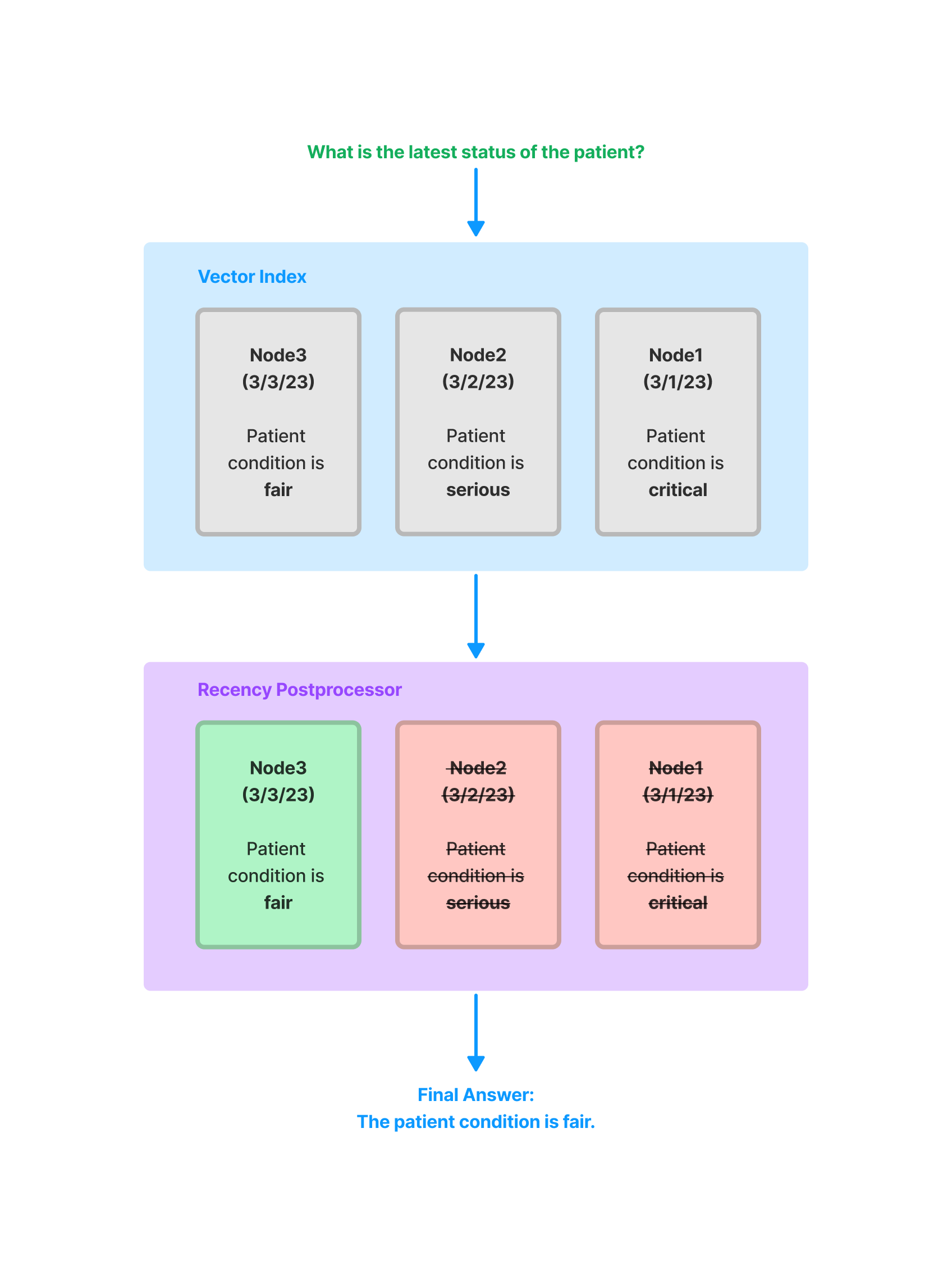postprocessor = FixedRecencyPostprocessor( tok_k=1, date_key="date" # the key in the metadata to find the date)